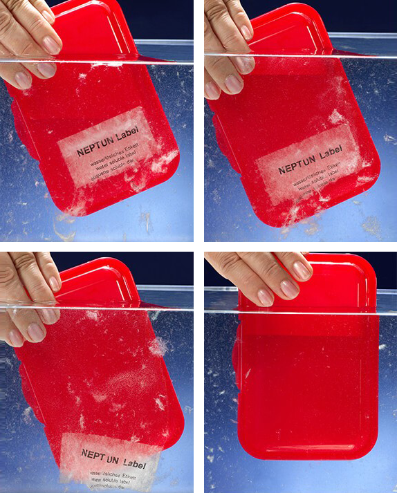 Hauptanwendungsbereich dieser Spezialetiketten ist die temporäre Kennzeichnung von Mehrwegbehältern. Sie lösen sich rückstandsfrei vom Behälter ab und im Wasser auf. Wasserlöslichen Etiketten sind somit die zeit- und kostensparende Alternative zu herkömmlichen Etiketten.